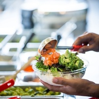 Poke Bros is a regional fast casual restaurant chain offering a delicious take on the popular Hawaiian dish with a build-your-own approach to poké bowls. Sushi lovers will enjoy this savory spin on the classic roll, featuring cube-cut fresh salmon and tuna on a bed of steamed rice, colorful vegetables, crunchy toppings, and delicious sauces. It's a quick and tasty lunch or dinner spot for those on the go and offers a whole range of nutritious flavors that leave you feeling guiltlessly full.
